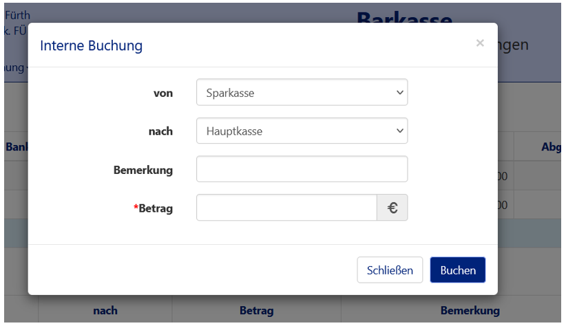 Für die Bestandüberführung ist eine interne Buchung vom Girokonto an Hauptkasse zu erstellen. Dafür sind folgende Schritte notwendig: